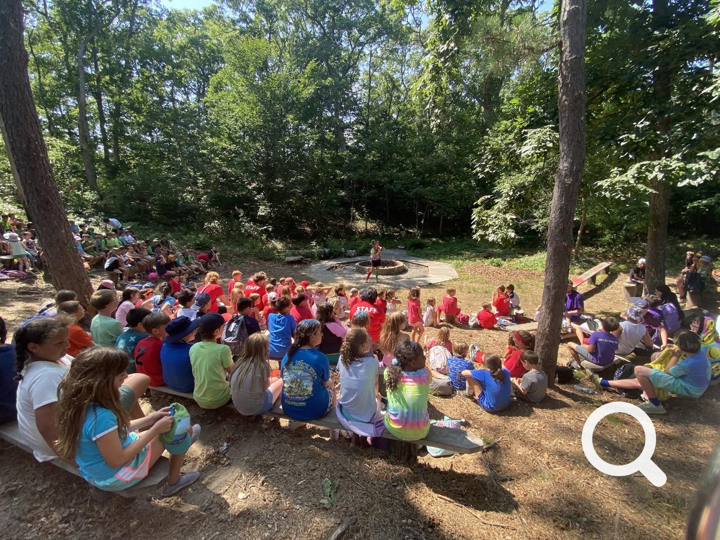 After the buses arrive, campers head to the Amphitheater behind Sullivan Hall for Morning Ceremonies. This has long been a gathering spot for campers, back to the Camp Clark days. Songs are sung, announcements made, and groups are sent from here, broken into their age groups. The Campers are broken into five distinct units of children.