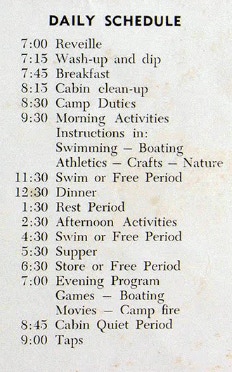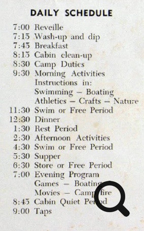 In the morning, following a call from the bugle and a dip in the pond, campers and staff would trek to the dining hall. Food was reported to be good, with cereal a popular meal for breakfast. On some occasions when bacon was smelled upon arrival, campers would burst into song: