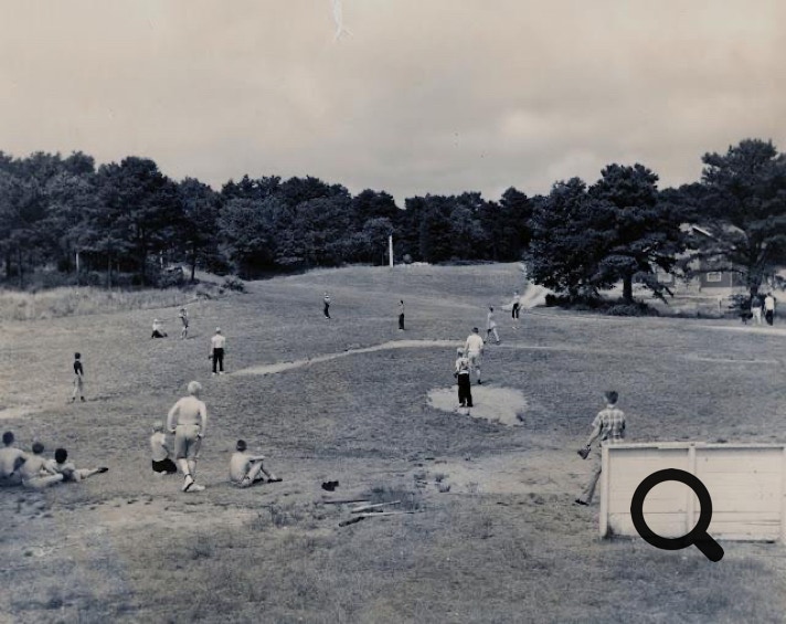 The first camp to open on Lawrence Pond (and Cape Cod) was Camp Cotuit, established in 1918 by the Schumacher sisters from New Jersey. Regular visitors to Sandwich in the summer, they wanted to bring girls from their metropolitan area to the wilderness of the Cape. The sisters heard news that Jones Farm, on the north of the pond, was for sale, and they commenced to visit after a March snowstorm. There, they looked out across the pond and saw a hill in the middle that looked like a loaf of brown bread. Thus, one of the most notable locations gained its name: Brown Bread Hill.