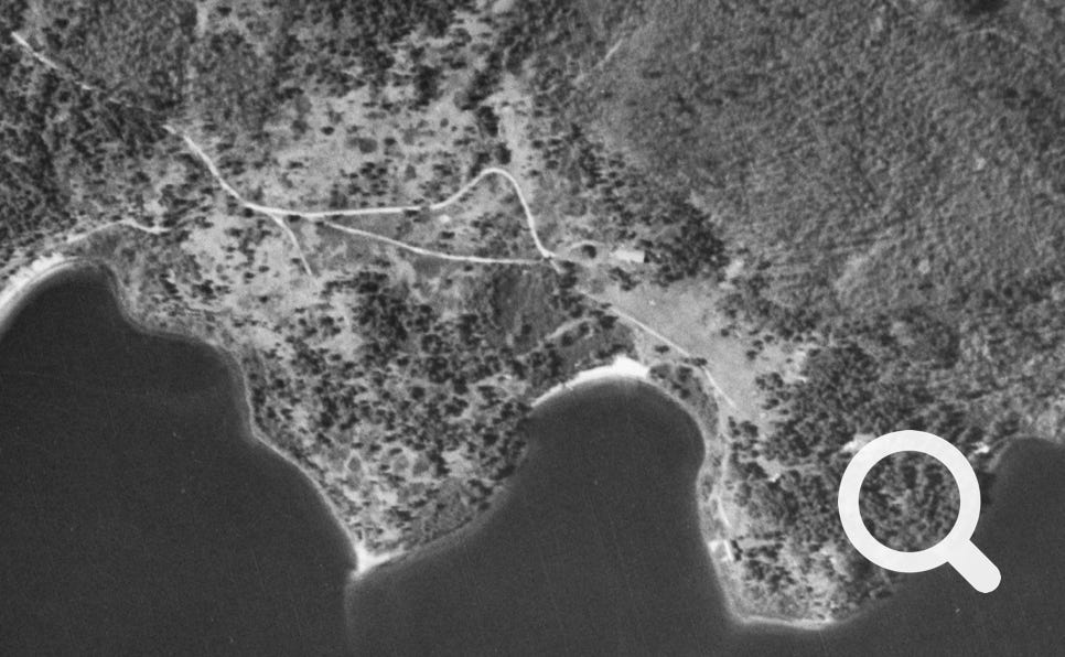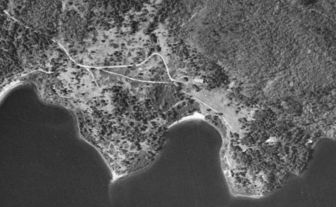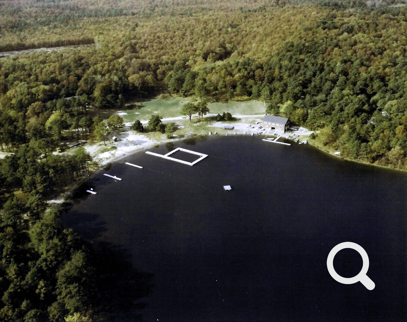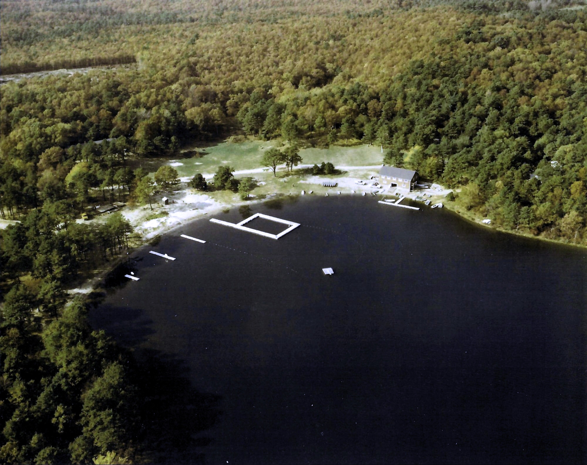 The camp was laid out with two areas, the “Junior” and “Senior” sections of tents. The Junior section was in the southern area of the camp, where today the small and large cabins sit. In the same area, by modern Bathhouse, was located the Paul Favor chapel. Behind the infirmary and office stood Brown Bread, also known as Cross Hill, where Sunday vespers were celebrated. The field by the shore saw endless games played, while the archery range sat tucked into the hillside beside the field.