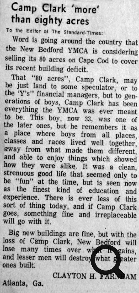 “The Committee to Save Camp Clark” was launched, with Pete Mandell serving as the chairman. Alumni of the camp flooded the local newspapers with pleas to halt the sale and campaigned to raise the money needed to prevent the sale.